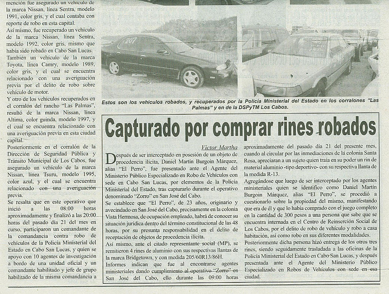En una bolsa de piel que ocultaba entre sus ropas, le encontraron envoltorios con crystal y cocaína Con varios envoltorios de droga fue detenido un obrero que derrapaba su vehículo en calles de la colonia Rinconada de esta ciudad capital, a tal grado que por la imprudencia con que conducía, no pudo controlar el volante y se atravesó al paso de una patrulla de Seguridad Pública Municipal, quienes de inmediato procedieron a su detención. Al realizarle revisión al acelerado conductor, los agentes le encontraron entre sus ropas una bolsa de piel dentro de la cual había ocho envoltorios de una sustancia cristalina y sólida con las características de la droga conocida como crystal y seis con un polvo blanco y fino, al parecer cocaína, motivo por el cual se procedió a la detención de quien dijo llamarse Luis Alberto Torres, obrero de 20 años de edad y vecino de la colonia Los Olivos. Fue a las 15:00 horas cuando los uniformados circulaban sobre el bulevar 5 de Febrero, cuando en el cruce con la calle Juan Domínguez Cota se les atravesó de manera intempestiva una vagoneta Toyota Four Runner color blanco, placas ZNC-7230, por lo que de inmediato le marcaron el alto al conductor que detuvo la marcha metros adelante. El sospechoso descendió de la camioneta para ofender verbalmente a los agentes y luego tratar de agredirlos, motivo por el cual se utilizó la fuerza para someterlo, encontrándole entre las ropas la bolsa de piel con los envoltorios de droga, solicitando la intervención del agente del Ministerio Público Federal, para cumplir con el protocolo de la “cadena de custodia”, la cual consiste en certificar en el lugar de los hechos, el tipo de sustancia que es asegurada. Al comprobarse que se trataba de cocaína y crystal, el acelerado conductor fue detenido y puesto a disposición del agente del Ministerio Público Federal adscrito al Centro de Operaciones Estratégicas (COE), donde se resolverá su situación jurídica. | |||||||||||||||||||||